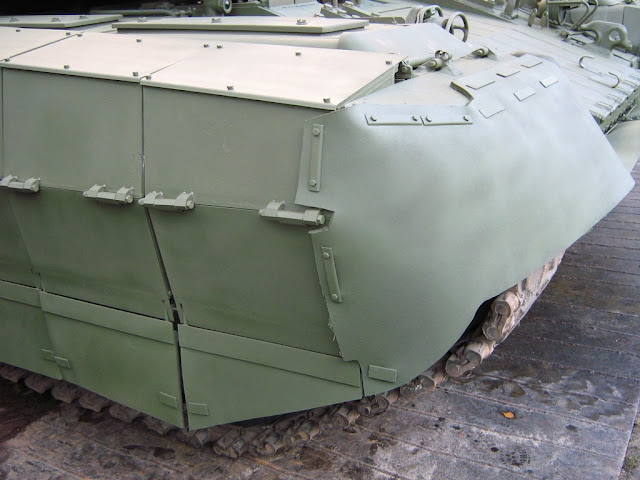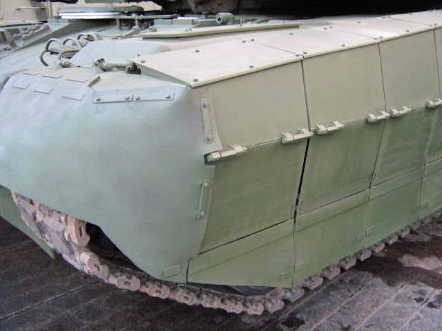 Цитата: А при чём тут корма мы счас про бок я имею ввиду фронтальную проекцию, ему бы еще крылья приделали для увеличения габаритов. Цитата: А что надо увидеть в креплении Точки крепления и его конструкция выбраны на редкость неудачно, есть основание полагать, что эти экраны просто от тряски на кочках поотваливаются, кстати это и фотки не окончательного Оплота-М, а его тык скыть ходового макета с какой-то давней презентации, хотя и окончательном варианте эти проблемы не устранены.