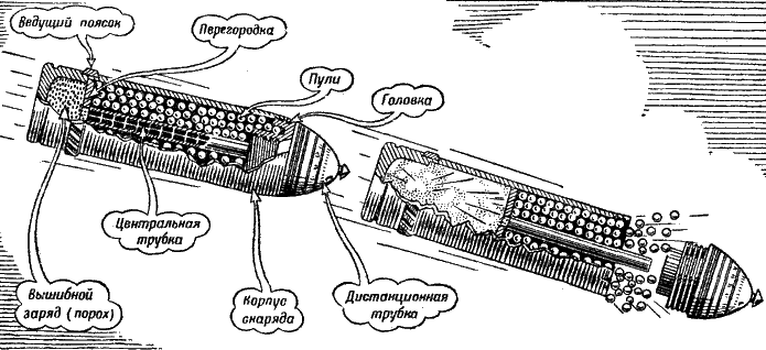 Вопрос - а нельзя ли усовершенствовать? Описанные снаряды растягивают осколочное поле по направлению полета. А если дать каждому суббоеприпасу по два небольших корректирующих заряда, справа и слева? Тогда перед выстрелом в каждый суббоеприпас вводится: 1. момент отделения от снаряда 2. момент срабатывания правого или левого корр. заряда 3. момент подрыва основного заряда суббоеприпаса. То есть по сравнению с исходной конструкцией добавятся в каждом суббоеприпасе грошовая электроника (таймер) и грошовые пиропатроны, зато можно над цель формировать осколочное поле более сложной формы.