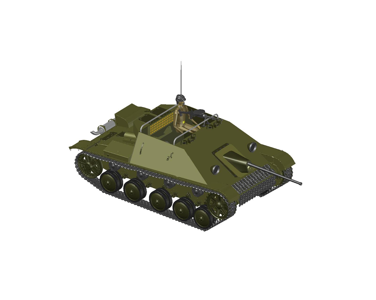 Теперь противотанкисты. Тут сложности. С противопульным бронированием на танки... Нужен новый сварной корпус. С наклоном ВЛД в 30 градусов и толщиной в 30 мм. Борта рубки 15 мм под 60 градусов. "Колотушка", в лоб и с курсовых углов +/- 15 градусов бы ее не пробила. Существующие танковые пушки вермахта, на дистанциях свыше 100 мм, то же. Только кумулятив. Но он на Pz.Kpfw. IV, а их всего 439 штук. На 1941 г. На всю линию фронта. Зис-2 на базу Т-26 не лезет. А "сорокопятка" в самый раз. В последствии и удлиненная. Весь пулеметный хлам она прошивала. Да и чешские поделия брала. Жить можно.