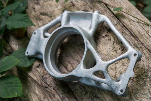 Это не "распечатанная", а спроектированая компьютером. Сгенерированная численным методом через множество итераций. Возможно, через планировку нагрузок и удаление материала из точек, не испытывающих нагрузки, возможно, еще как. Какой именно способ применен - хз, но арбуз лет 10 назад хвастался, что таким методом делал облегченные детали для своего 380.