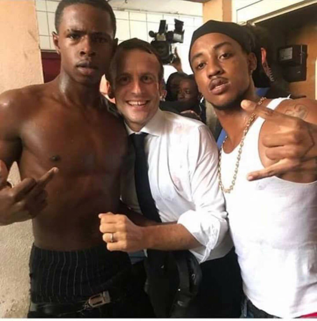 Европейский халифат / Франкистан Месть неоконских кукловодов своей бывшей гомосексуальной марионетке. Макарона сейчас ведут глобалщики.      В дискузии пишут, что негр обнимаючий Макарона пришел из тюрмы. Заметите на этом кадру выражения лица пареня из охранки Макарона, на его омерзение ... В Западной Европе владует гнусная сволочь ... Источник: https://colonelcassad.livejournal.com/4491381.htmlhttps://twitter.com/valerieboyer13/stat ... 42/photo/1